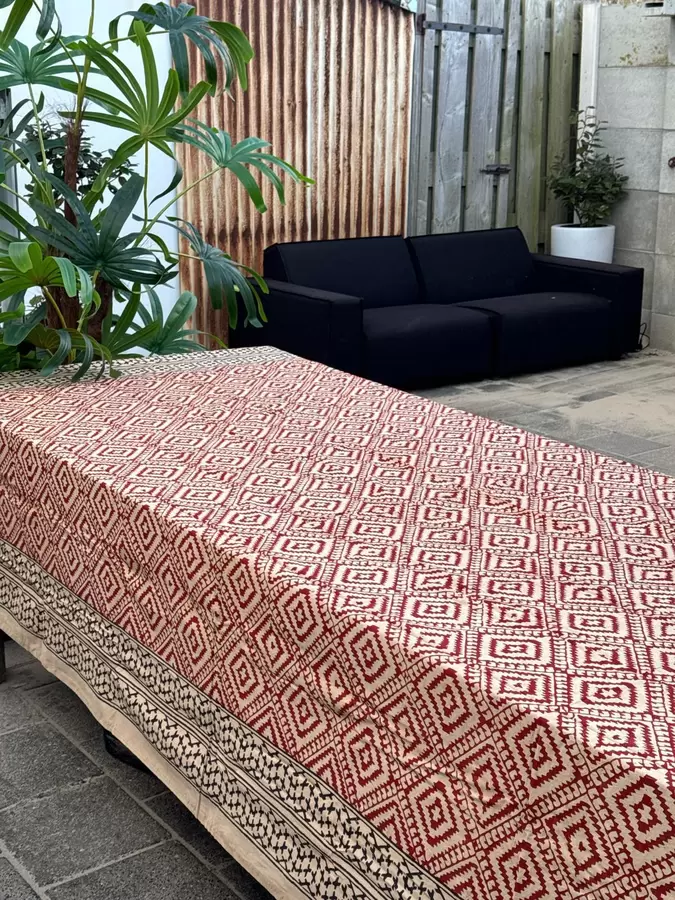Dit mooie kleed heeft een afmeting van 275 x 225 cm en is gemaakt van 100% katoen, het laken kan gebruikt worden voor diverse doeleinden zoals o.a. een tafellaken, beddensprei, strandlaken of grand foulard.