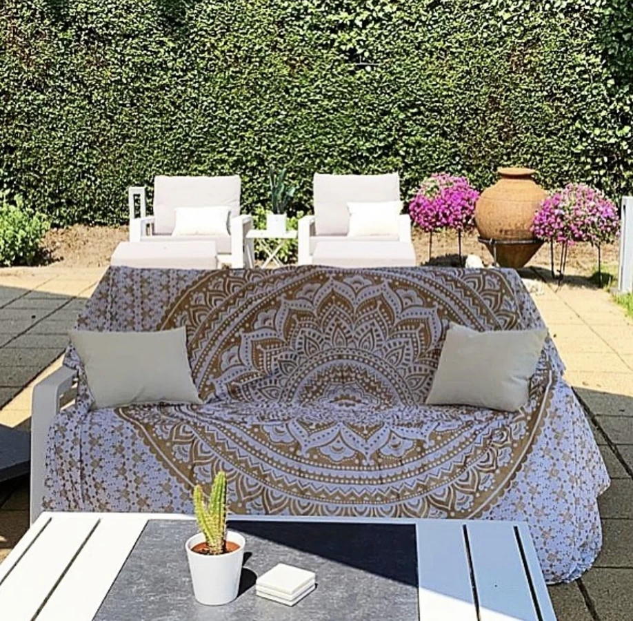 Prachtige gekleurde Ibiza lakens gemaakt van 100 % Katoen, en de maat 210 x 240 cmDit strandkleed is te bestellen in verschillende kleuren en motieven. zie afbeeldingenMaar natuurlijk is hij ook geschikt voor andere doeleinde, wat dacht u als leuk picknick-kleed, maar wordt ook veel gebruikt als wandkleden, voor in de tuin, of natuurlijk in huis. en op een zomerse dag kunt u ook uw eettafel opfleuren met een van de prachtige gekleurde tafellakens.Als het bedsprei wordt het ook veel gebruikt omdat de maat 240 x 210 cm perfect past over een twee persoon- bed en na keer wassen is het heerlijk om onder het zachte katoen te slapen, en natuurlijk als foulard op de bank.Wilt u nog naar een festival dan zijn deze doeken ook zeer geschikt om een eigen plaatsje te creëren. en natuurlijk als cadeau is dit een echte binnenkomer op het feestje.