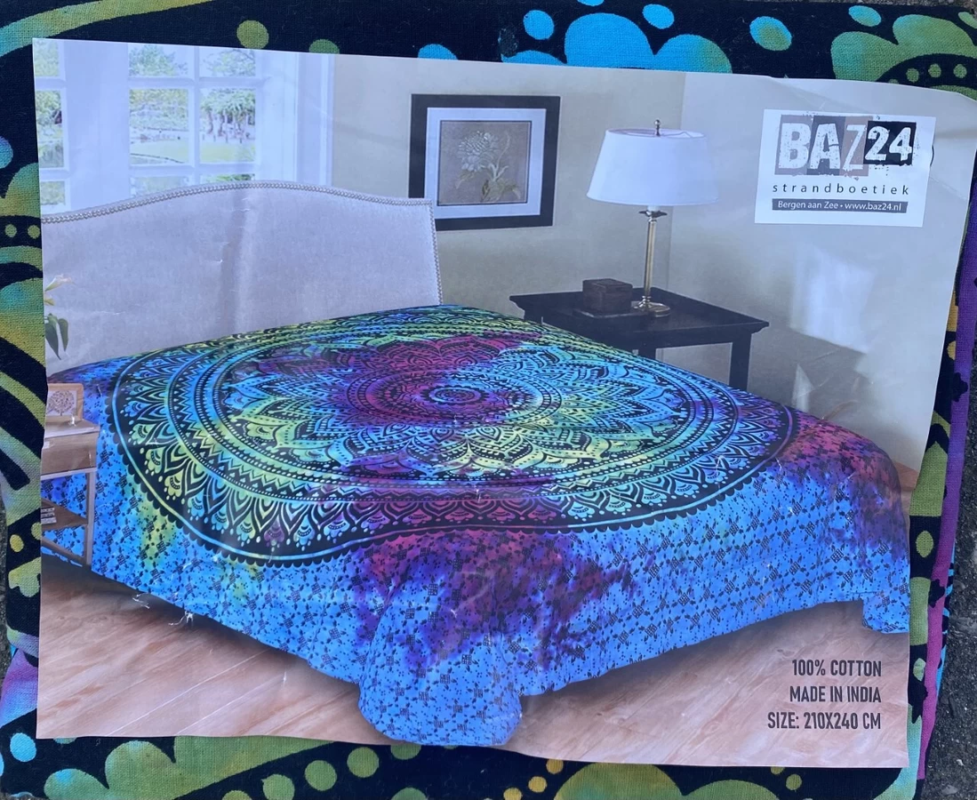 Prachtige gekleurde Ibiza lakens gemaakt van 100 % Katoen, en de maat 210 x 240 cmDit strandkleed is te bestellen in verschillende kleuren en motieven. zie afbeeldingenMaar natuurlijk is hij ook geschikt voor andere doeleinde, wat dacht u als leuk picknick-kleed, maar wordt ook veel gebruikt als wandkleden, voor in de tuin, of natuurlijk in huis. en op een zomerse dag kunt u ook uw eettafel opfleuren met een van de prachtige gekleurde tafellakens.Als het bedsprei wordt het ook veel gebruikt omdat de maat 240 x 210 cm perfect past over een twee persoon- bed en na keer wassen is het heerlijk om onder het zachte katoen te slapen, en natuurlijk als foulard op de bank.Wilt u nog naar een festival dan zijn deze doeken ook zeer geschikt om een eigen plaatsje te creëren.  en natuurlijk als cadeau is dit een echte binnenkomer op het feestje.