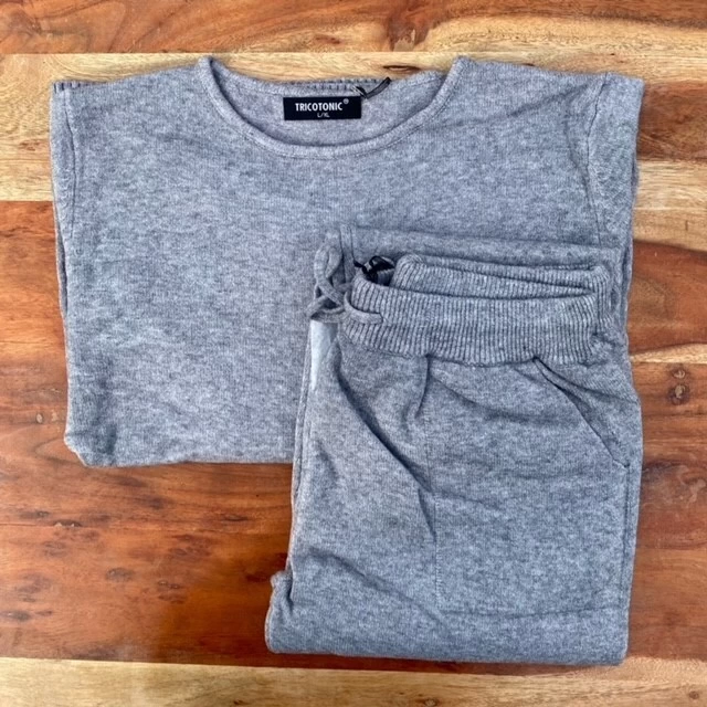 Na veel vragen hebben we ze weer binnen. In verschillende kleuren te verkrijgen, broek met touwtje om aan te snoeren, twee insteek zakken aan beide kanten. Trui met lange mouwen en ronde hals.Het pak valt iets kleiner uit.