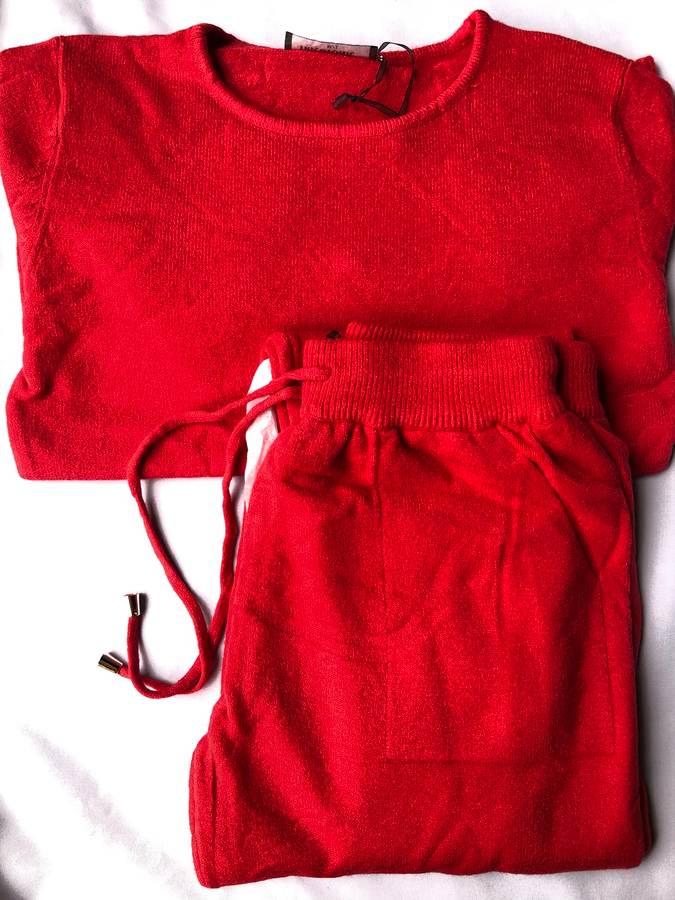Na veel vragen hebben we ze weer binnen. In verschillende kleuren te verkrijgen, broek met touwtje om aan te snoeren, twee insteek zakken aan beide kanten. Trui met lange mouwen en ronde hals.Het pak valt iets kleiner uit.