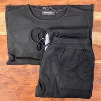 Na veel vragen hebben we ze weer binnen. In verschillende kleuren te verkrijgen, broek met touwtje om aan te snoeren, twee insteek zakken aan beide kanten. Trui met lange mouwen en ronde hals.