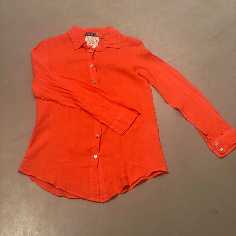 Een mooie blouse gemaakt van 100% linnen. Het grootste voordeel van deze prachtige blouse dat ze heerlijk koel zijn in de zomer, zijn ademend en ventilerend. en natuurlijk niet te vergeten, linnen is de sterkste van alle plantaardige vezels en daardoor is vrij van pluizen en hoe vaker je het wast, hoe zachter het wordt.