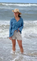 Een mooie blouse gemaakt van 100% linnen. Het grootste voordeel van deze prachtige blouse dat ze heerlijk koel zijn in de zomer, zijn ademend en ventilerend. en natuurlijk niet te vergeten, linnen is de sterkste van alle plantaardige vezels en daardoor is vrij van pluizen en hoe vaker je het wast, hoe zachter het wordt.