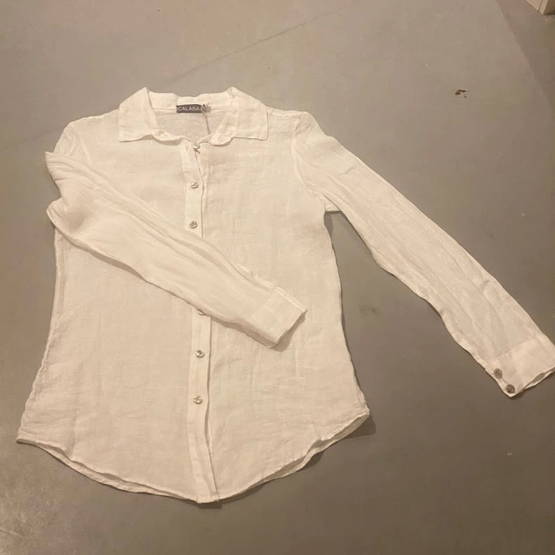 Een mooie blouse gemaakt van 100% linnen. Het grootste voordeel van deze prachtige blouse dat ze heerlijk koel zijn in de zomer, zijn ademend en ventilerend. en natuurlijk niet te vergeten, linnen is de sterkste van alle plantaardige vezels en daardoor is vrij van pluizen en hoe vaker je het wast, hoe zachter het wordt.